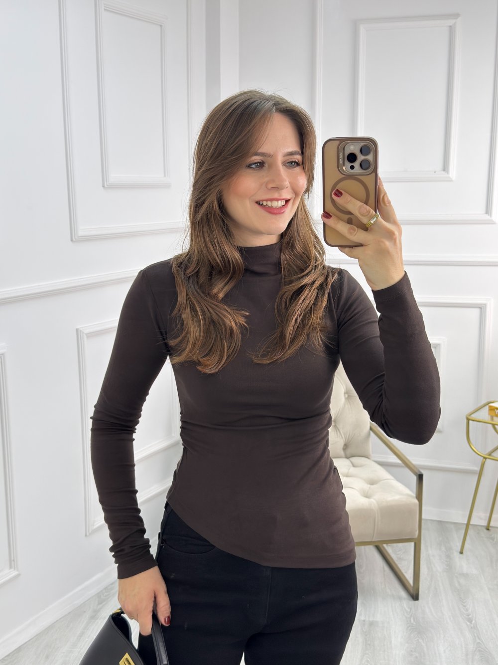Boğazlı Asimetrik Bluz Kahverengi