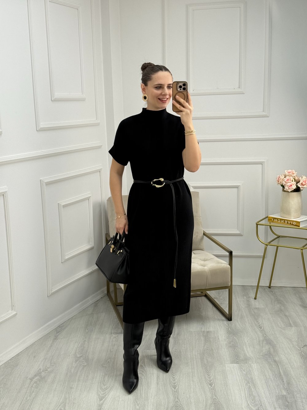 Kemer Detaylı Elbise Siyah