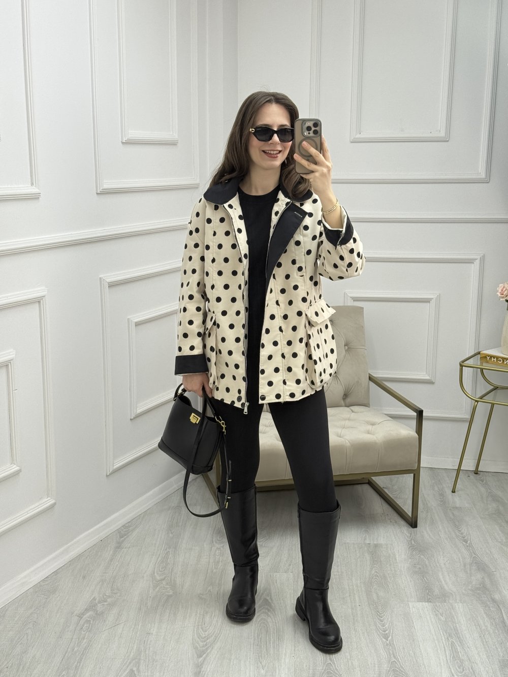 Önden Cep Detaylı Puantiyeli Ceket Krem