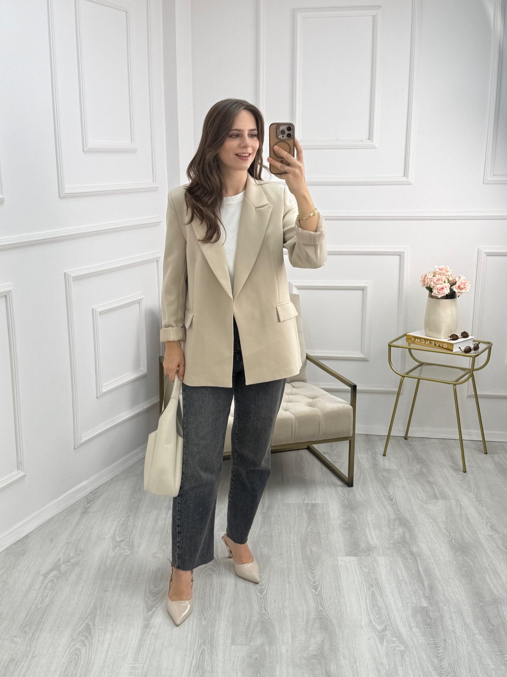 Vatkalı Blazer Ceket Krem